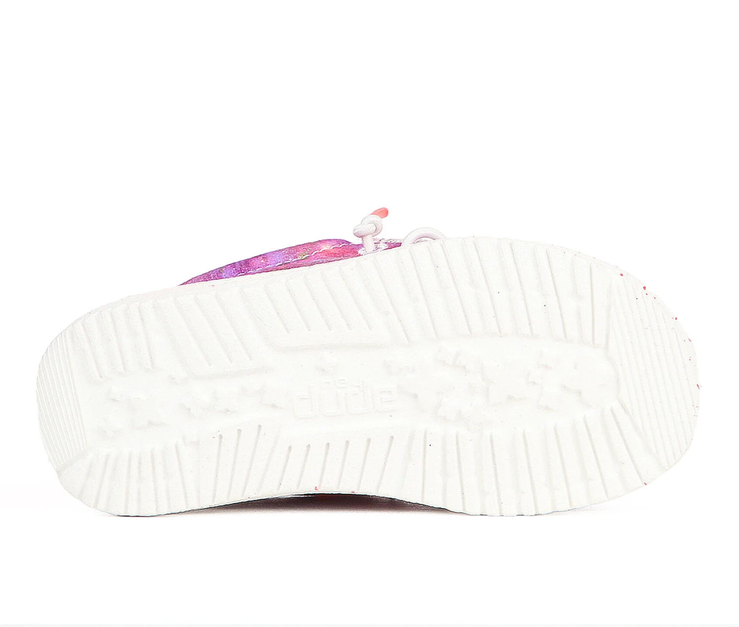 - Just like our grown-up Wally your mini can easily slip on and kick off their shoes with ease. Built with a cotton canvas on an ultralight outsole and an easy-on, elastic lacing system. Finished off with prints to keep him going all day!