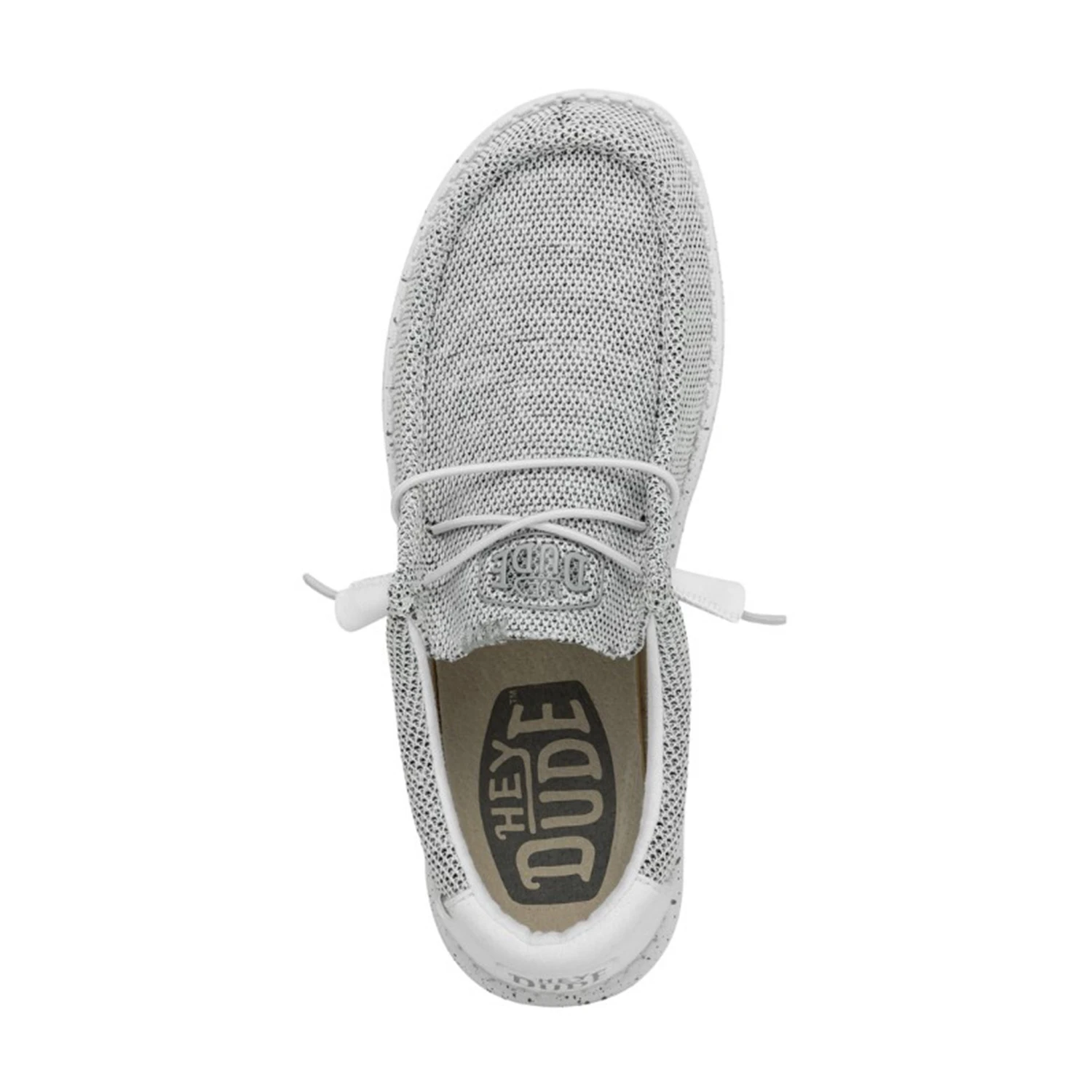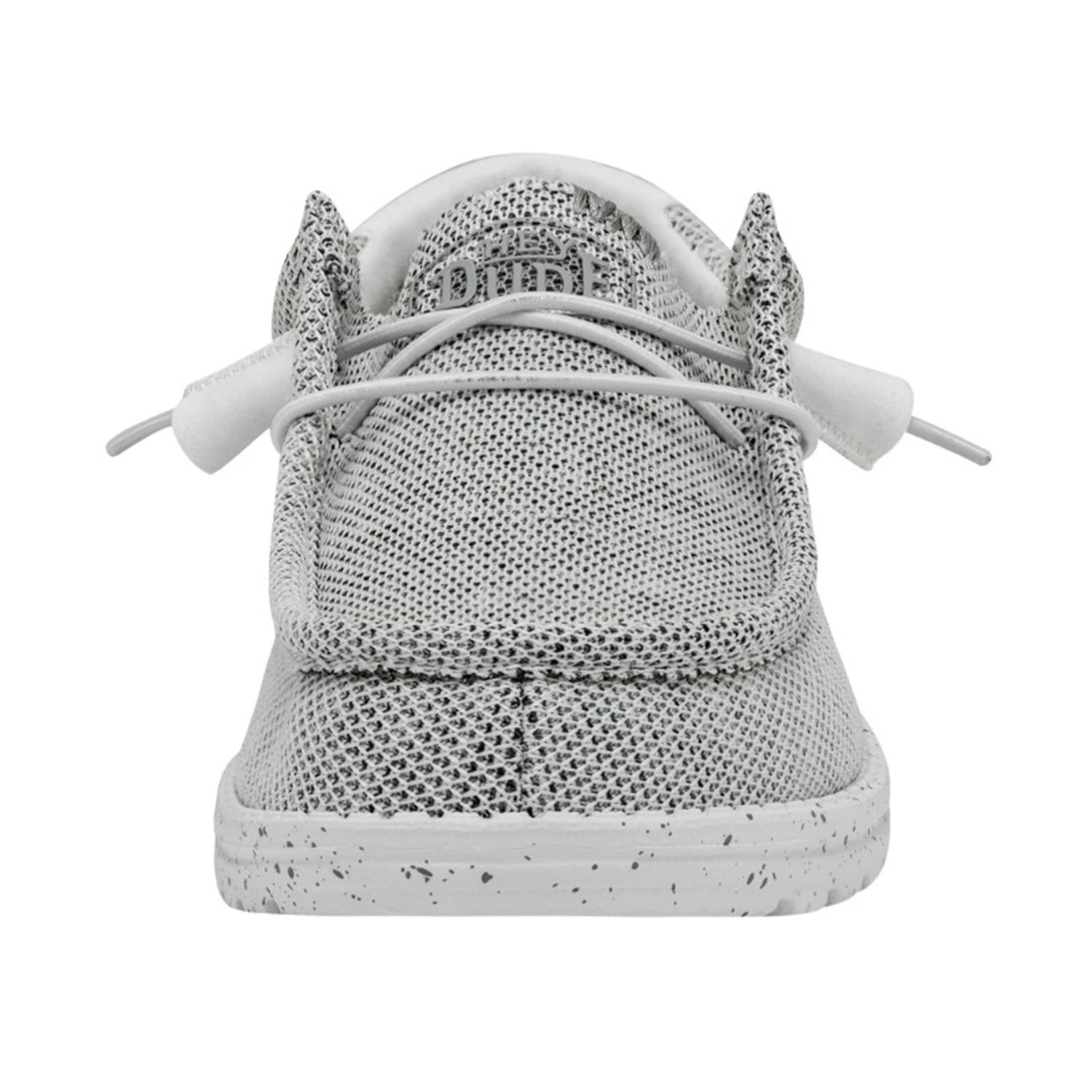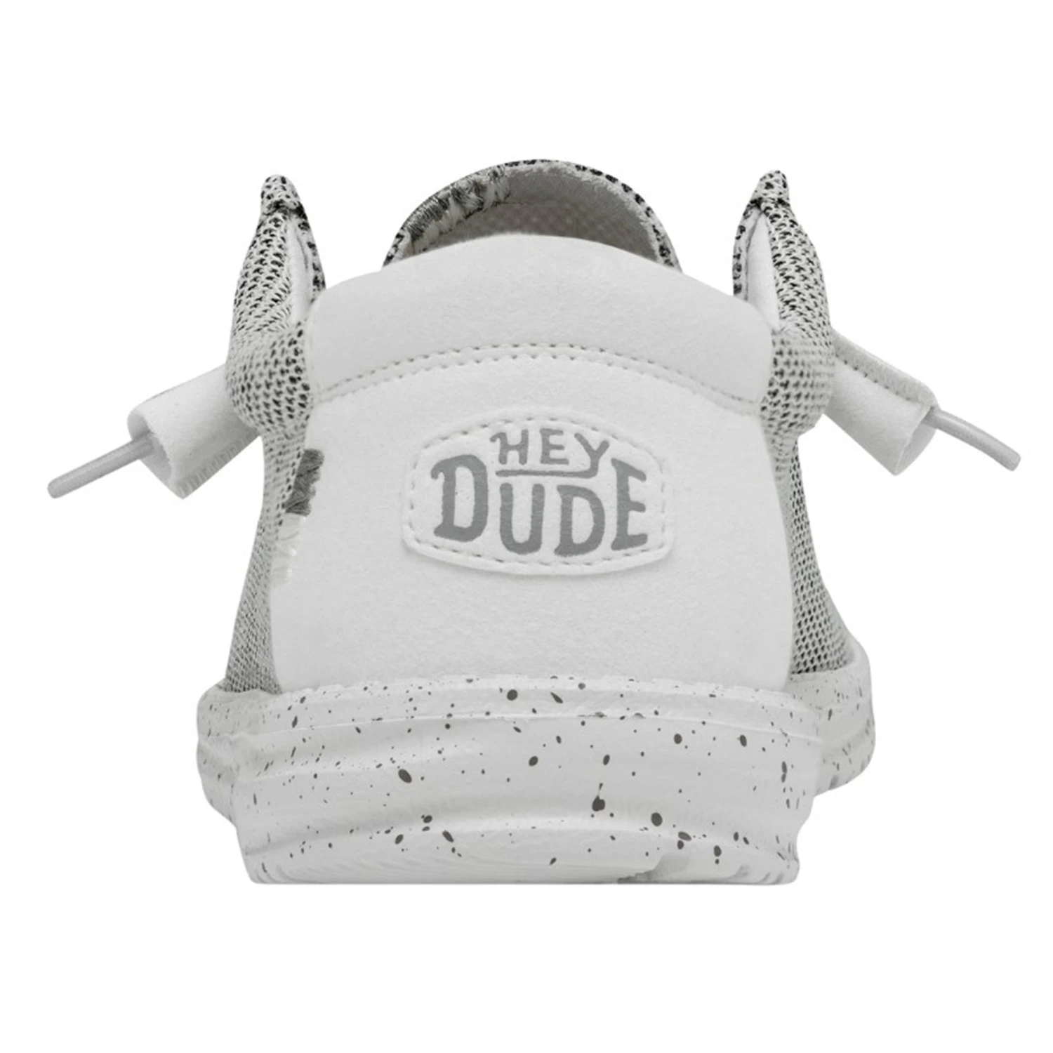 These men’s shoes from Hey Dude are stone white with a white speckled outsole. Hey Dude shoes are comfortable and very light weight!Â