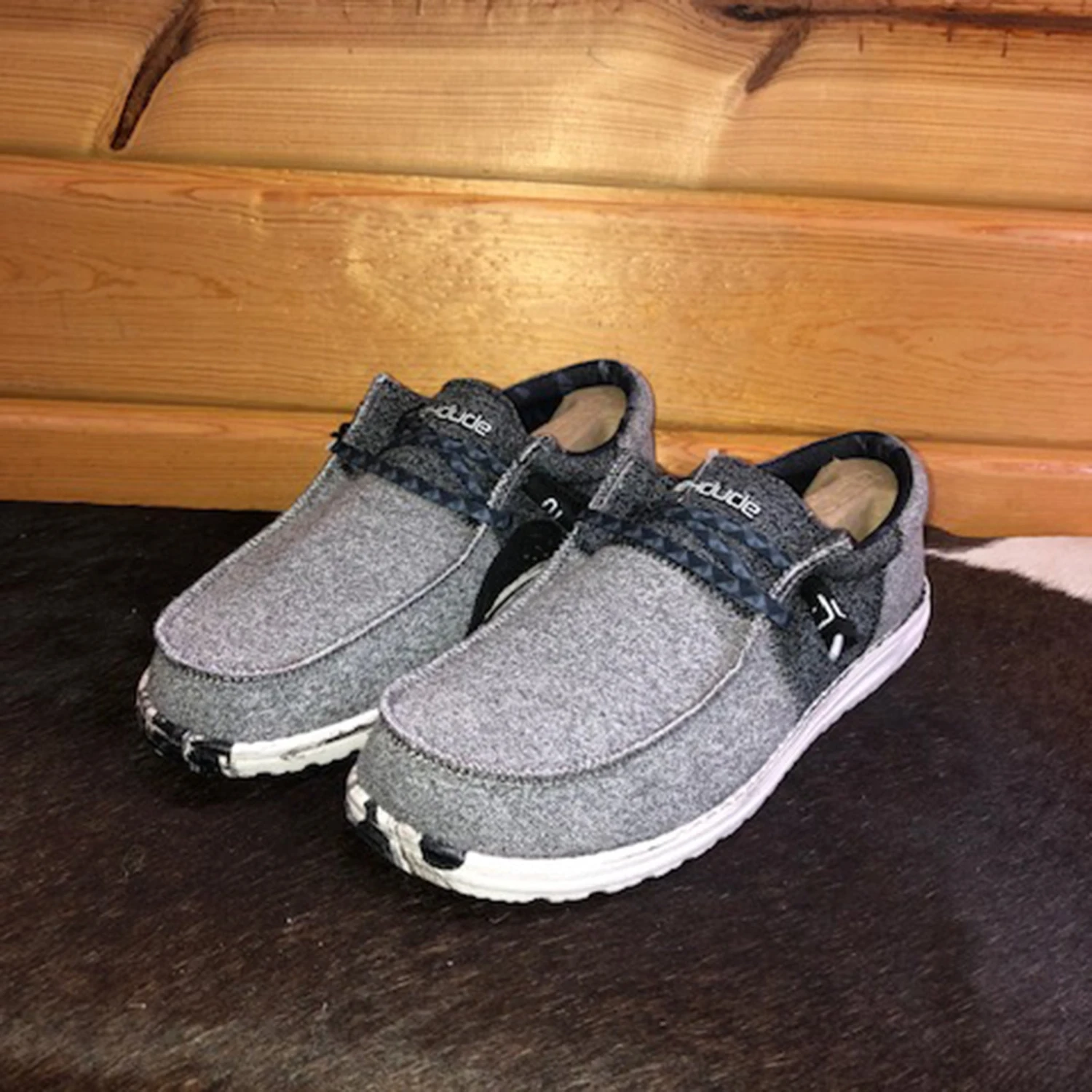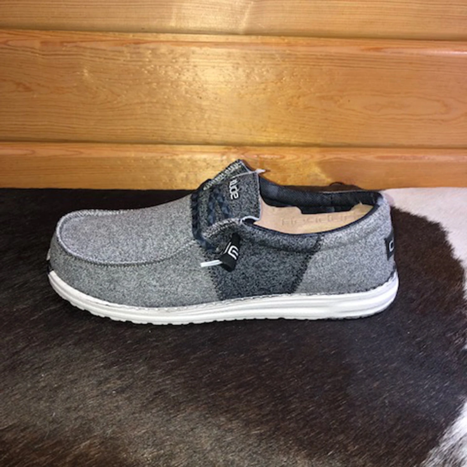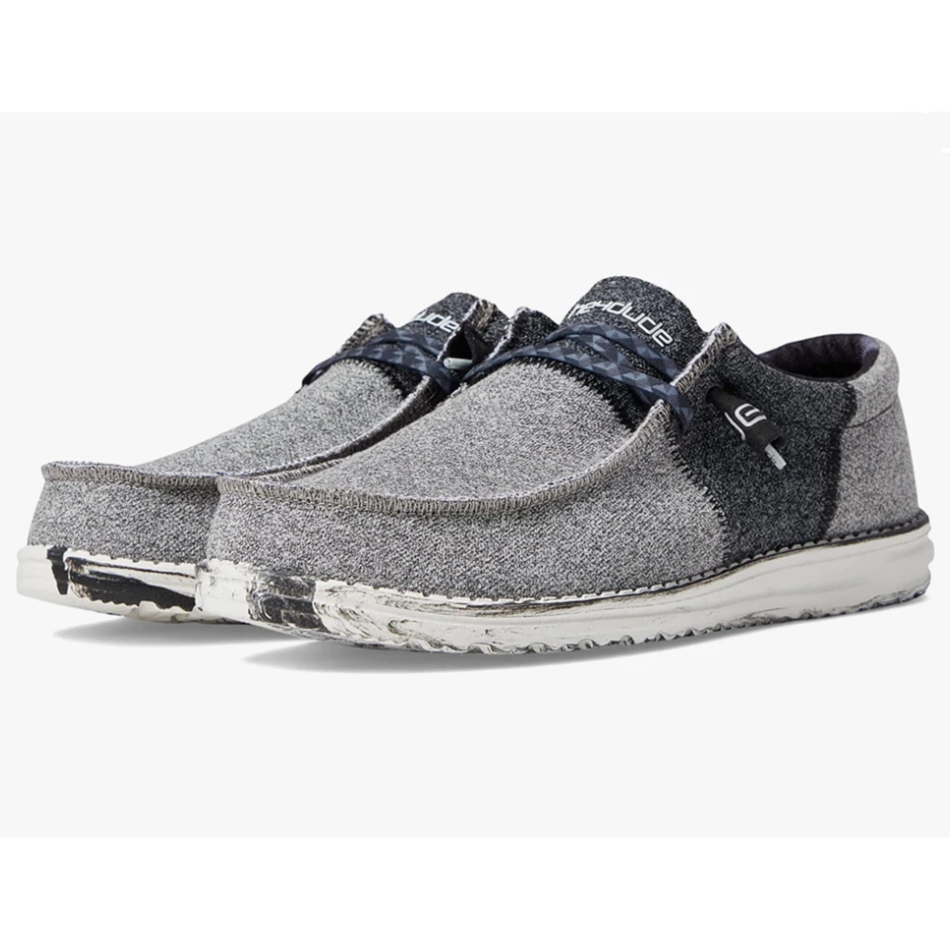 The Hey Dude Wally collection introduces our most popular low-top moc. A breathable chambray-blend upper and lined with a soft, cotton lining for simple strides. Featuring an easy-on system with elastic laces, an ultralight outsole and a cushioned ankle collar for all-day comfort and wear.Â