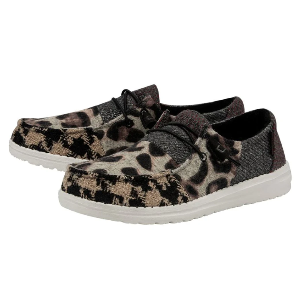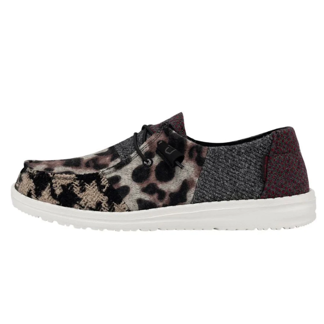 The Hey Dude Wendy Patchwork Java, is made for the ladies who like to stand out and have a little fun!  A soft, breathable cotton canvas in a leopard and neutral patchwork pattern.  Featuring an easy-on system with elastic laces and an ultralight outsole.