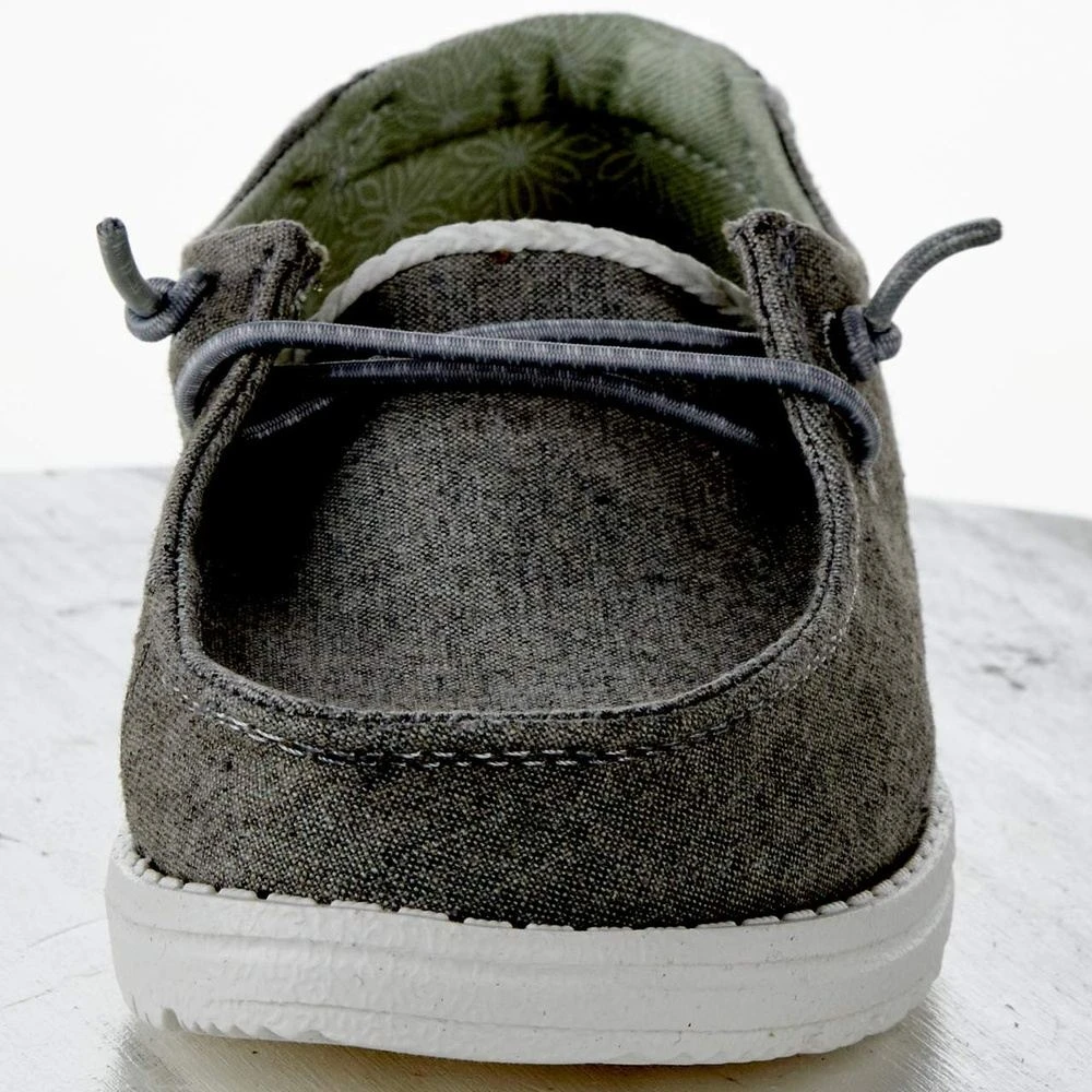 This particular Chambray version of the Wendy collection introduces an iconic low top moc with soft chambray-cotton throughout. They are soft, breathable blend of cotton and canvas. This shoe is lined with a leather-lined insole for comfort while featuring the easy-on system with elastic laces and ultralight outsole.