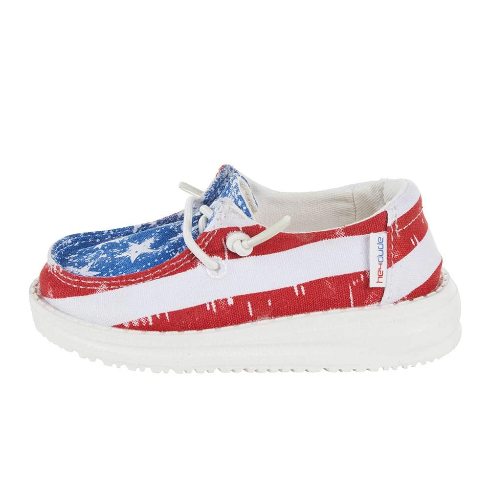 The Wendy collection introduces our iconic low-top moc. A soft, breathable cotton canvas in a timeless, Patriotic design and lined in a soft, cotton lining for simple strides. Featuring an easy-on system with elastic laces and an ultralight outsole for all-day comfort.Â