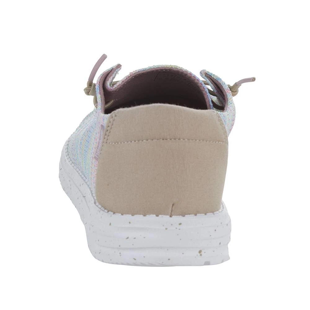 This particular Wendy Sox Casual version of the Wendy collection introduces an iconic low top moc that fits like a sock. They are soft, breathable blend of stretch polyester fabric. This shoe is lined in for comfort with a leather lined removabl insole while featuring the easy-on system with elastic laces and ultralight outsole. 121920214