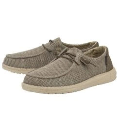- A cotton slip-on sneaker with an iconic shape and sturdy, comfy HEYDUDE construction. Plus custom-look details. Slip this on and head on out to take on any day. Featuring our easy-on system with no-tie, elastic laces and an ultralight EVA outsole to make even your busiest days, at ease.