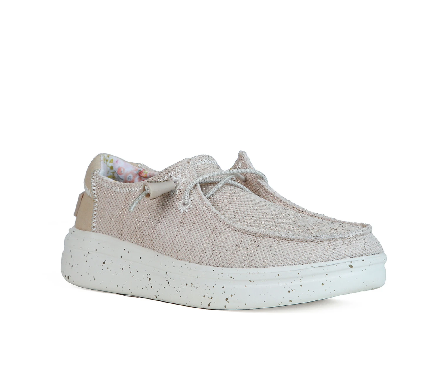 - Stretch-polyester blend upper with contrasting heel detail
